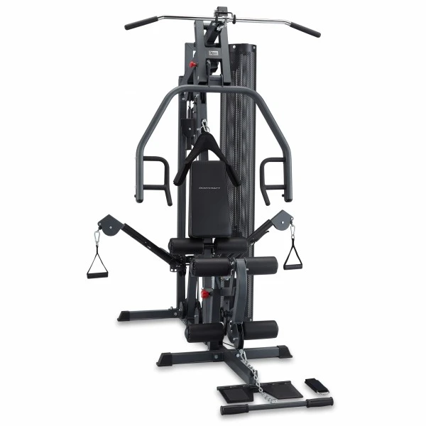 De zit,- en rugkussens zijn individueel verstelbaar zodat je een perfecte trainingshouding hebt. Het krachtstation kan tot maar liefst 900 kg worden belast en is daardoor perfect geschikt voor zeer intensieve training. Bij de levering zijn inbegrepen een lat-trekstang, een handvat voor de roeier, een voetriem, handgrepen en een oefenvideo in het Engels. Door de eenvoudige verbinding tussen de vrije trekkabels voor de breastpress, wordt de ingestelde weerstand van het gewichtsblok verzwaard. Hierdoor is de maximale weerstand voor bankdrukken bijvoorbeeld 180 kg. Het BodyCraft krachtstation is zeer stevig en perfect geschikt voor thuisgebruik. Op slechts een apparaat kan je je hele lichaam effectief trainen.