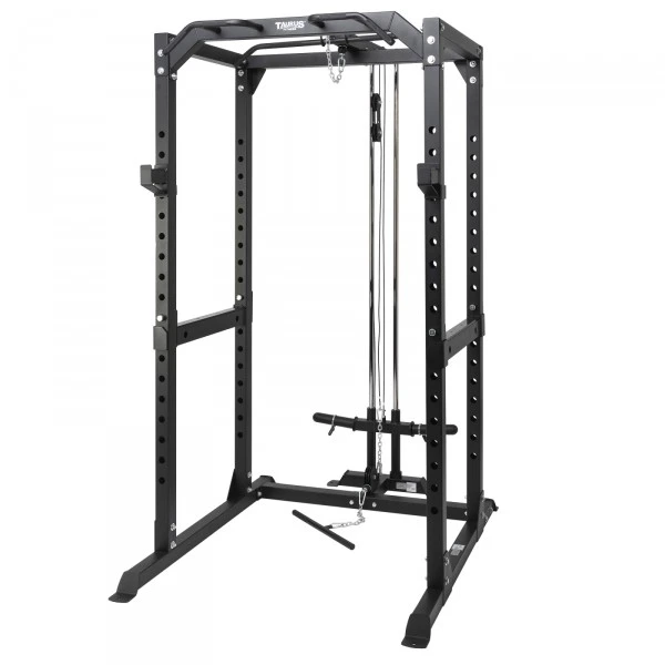 De Taurus Power Cage Voordeelset is een complete set, bestaande uit de Taurus Power Cage Premium, een cable pulley, een dipstation en een paar extra haltersteunen. Met de Taurus Power Cage Voordeelset doe je niet alleen je oefeningen met de lange halterstang veiliger en gemakkelijker, maar kan je dankzij alle uitbreidingen een groot aantal oefeningen doen, zoals optrekken, dippen en oefeningen met een cable pulley. Je kan effectief je armen en bovenlichaam trainen met deadlifts en je beenspieren met squats. De set bevat twee brede haltersteunen en 4 korte haltersteunen (haken), een cable pulley met twee katrollen, dip bars, een optrekstang, een lat pull stang en een korte bicep/roeistang.
